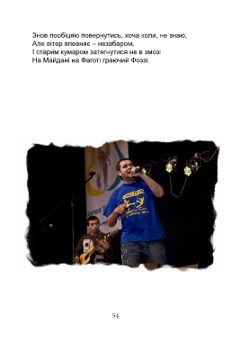 Знов пообіцяю повернутись, хоча коли, не знаю, Але вітер впевняє – незабаром, І старим кумаром затягнутися не в змозі На Майдані на Фаготі граючий Фоззі. 54